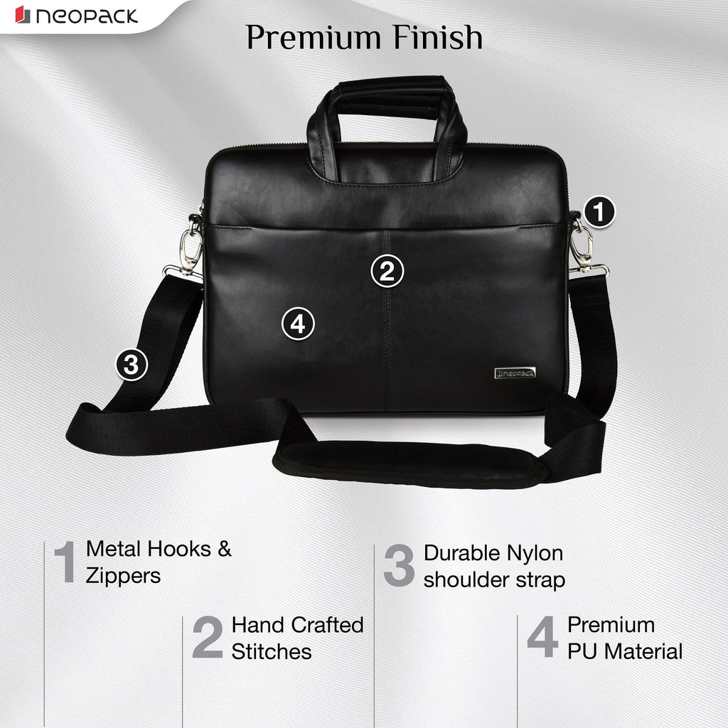 The Neopack stylish Leather bag is designed for 15" Laptops and 16" MacBooks. It is helpful to protect your gadget from dust or scratches. The sleeve has features a large zippered front pocket to store a notepad, mouse, power adapter or other necessities. Perfect for use during travel or between meetings when a laptop and core accessories is all you need.